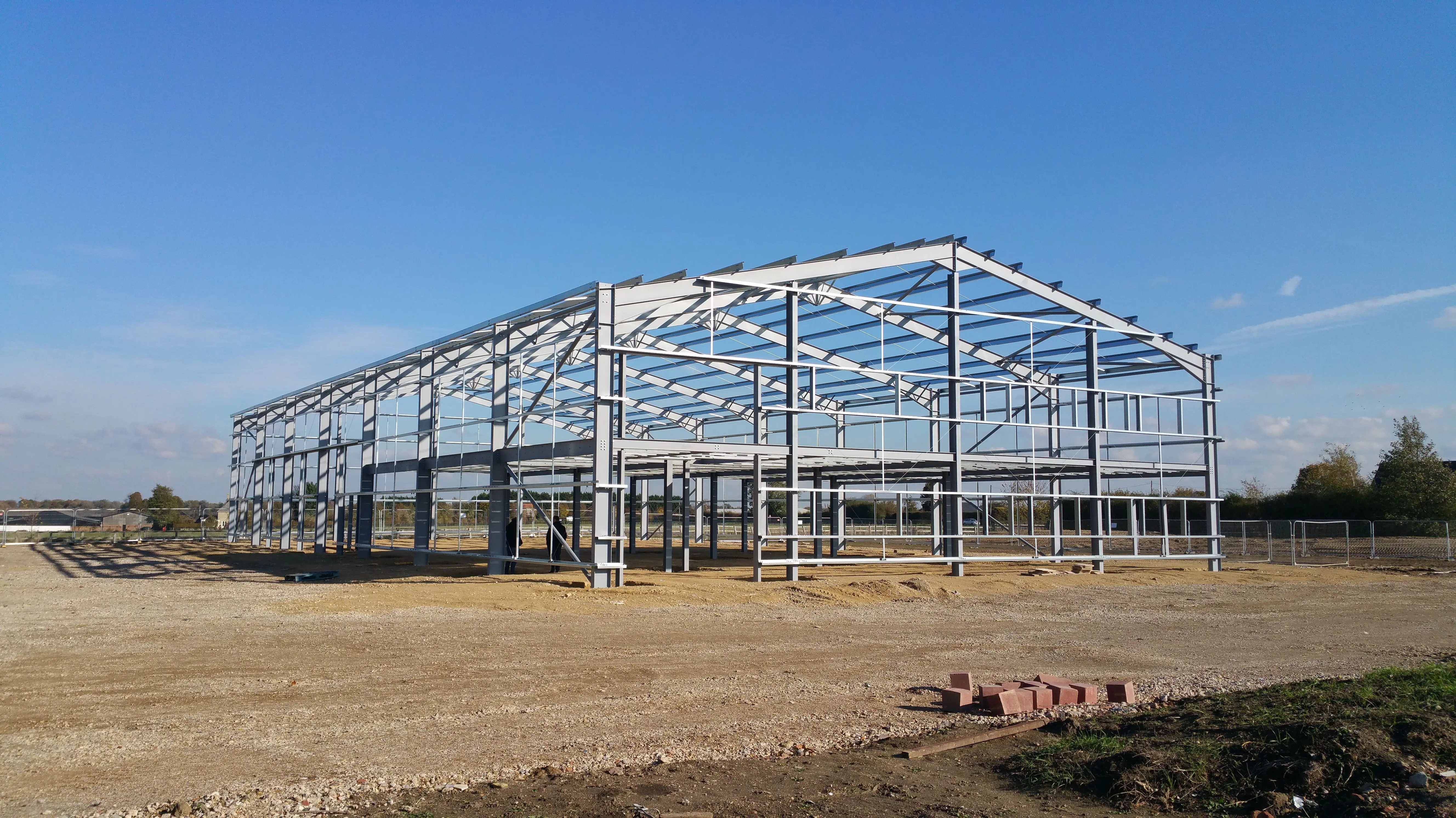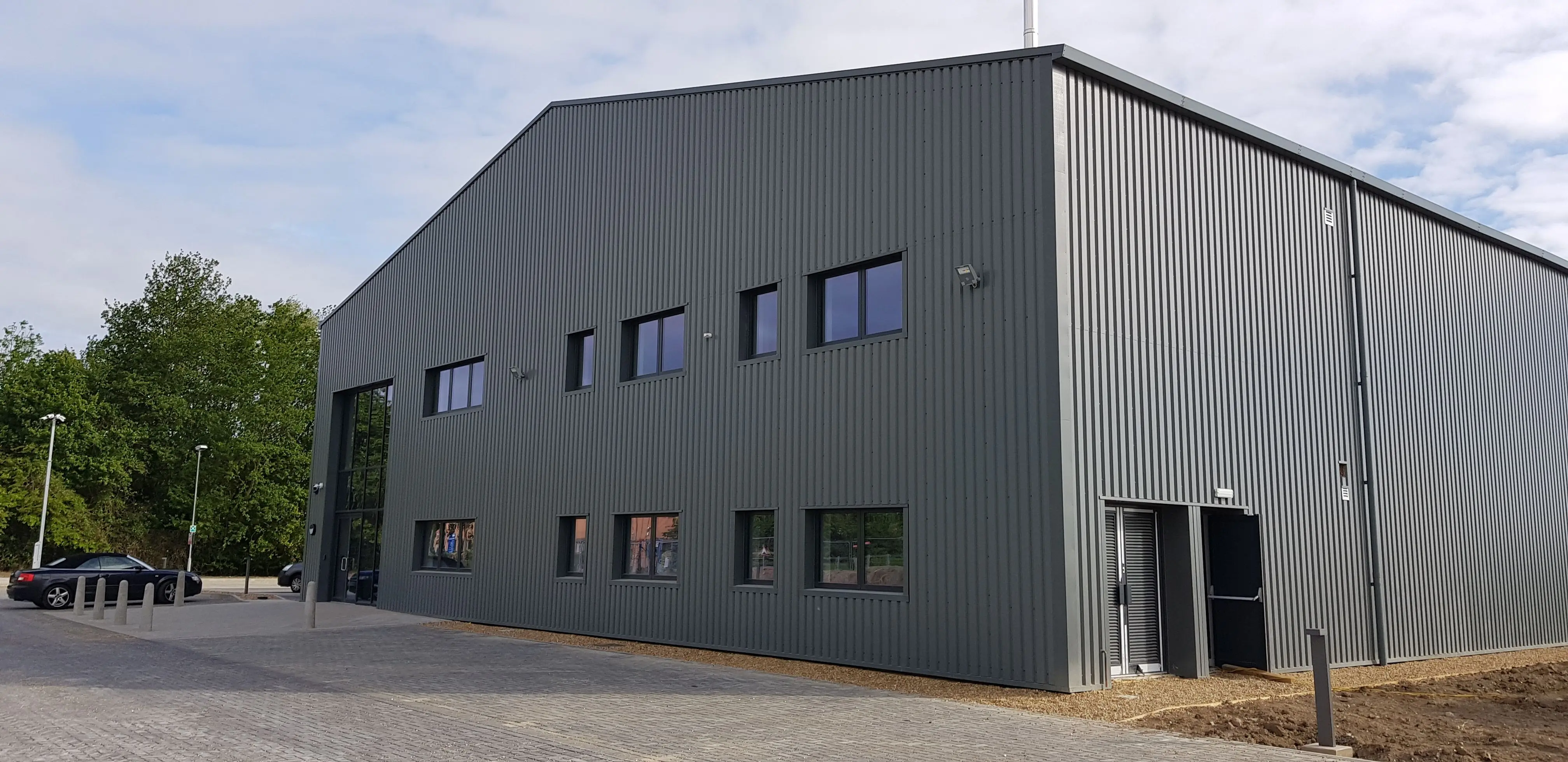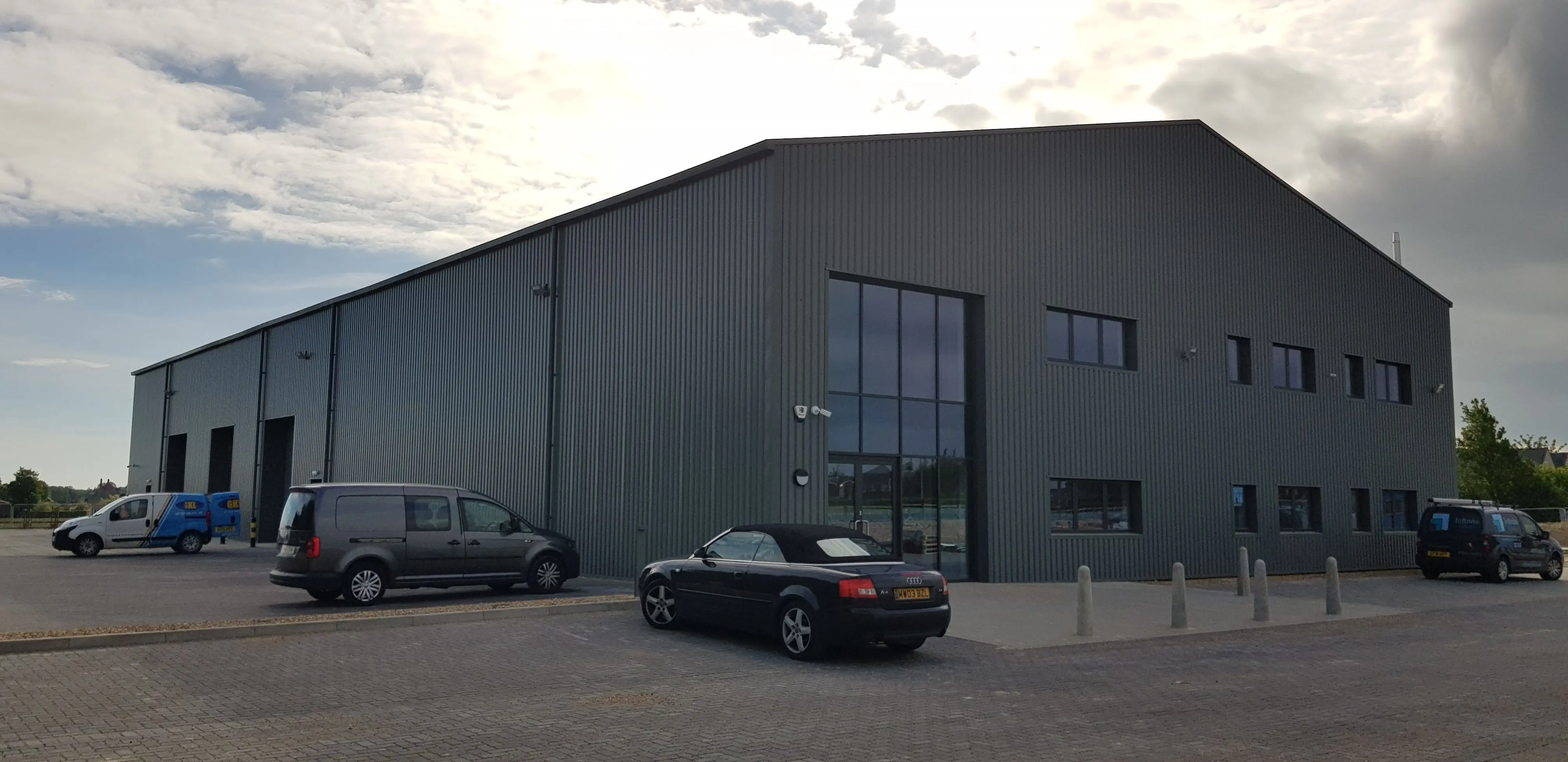In 2019, one of our engineering projects was the construction of a steel warehouse with a mezzanine floor and office spaces in Litlington, near Royston. This involved the excavation and levelling of the site using Type 2 hardcore and a sand blinding layer. Once the perimeter was insulated, polythene DPM was applied followed by a layer of mesh reinforcement. Concrete was then poured to an S4 consistency with a superplasticiser to form the floor slab. This was completed in two days with two pours of approximately six hours each to create a 240m³ floor slab. The warehouse base was floated into place in the early hours of the morning. The junction from Bassingbourn Road will also be widened to allow for two-way traffic, eliminating the current one-way system around the site.